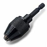 小型のボール盤があれば良かったのですが、持っていなかったので電動ドライバーにドリルチャックを付けて、部品の足とリード線を通す穴を基板に空けていきます。